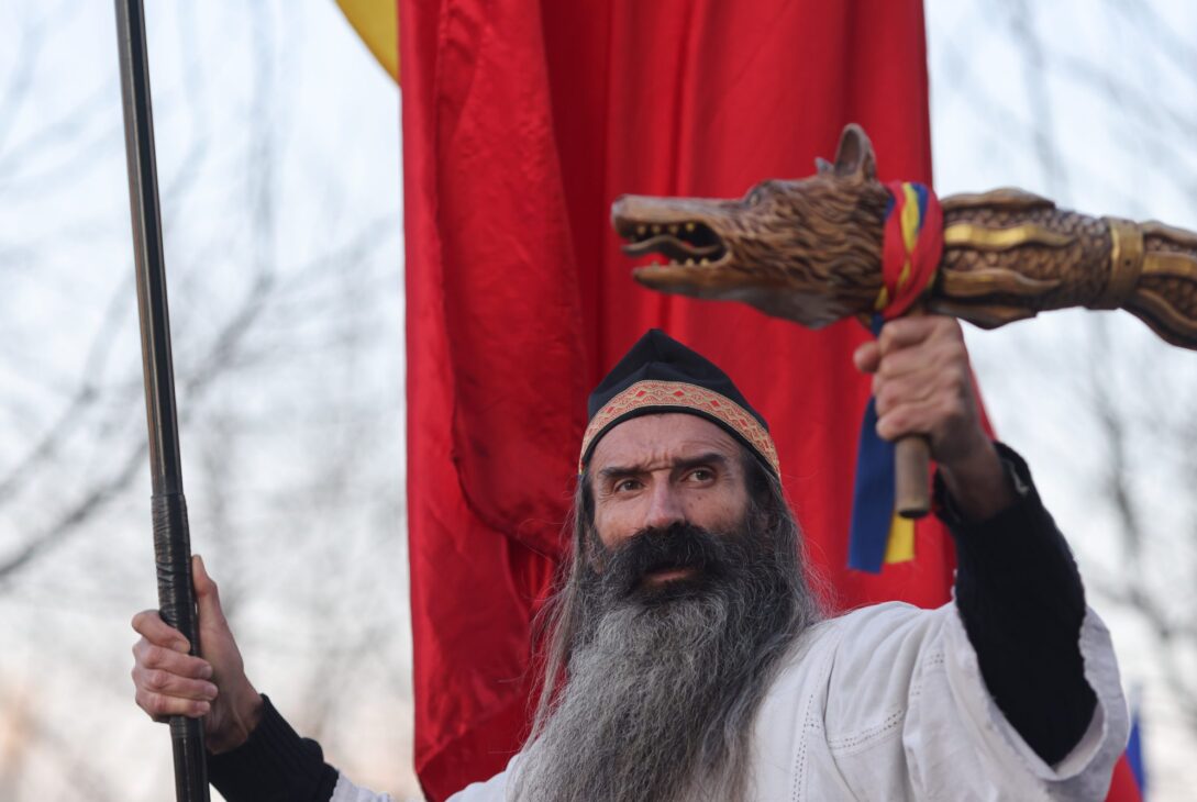 Cezar Avrămuță („Stegarul dac”) / Susținători ai lui Călin Georgescu participă la un miting de protest în dreptul sediului Înaltei Curți de Casație și Justiție din București, 16 ianuarie 2025. FOTO: Inquam Photos / George Călin