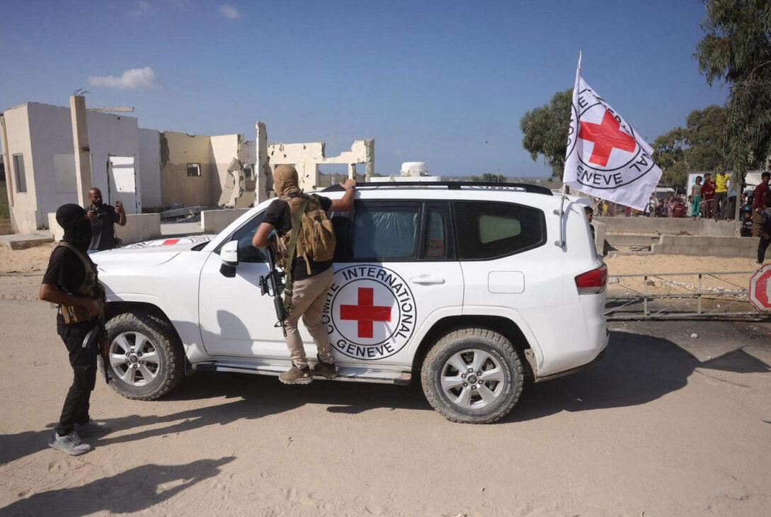 O mașină a Crucii Roșii se pregătește să preia ostaticii israelieni. FOTO: Bashar TALEB / AFP / Profimedia