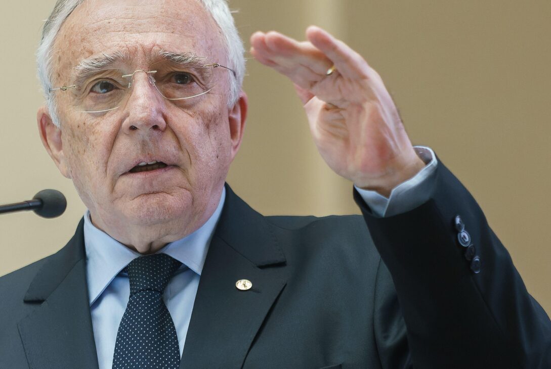 Mugur Isărescu în conferință la sediul BNR. Foto: Lucian Alecu / Alamy / Profimedia