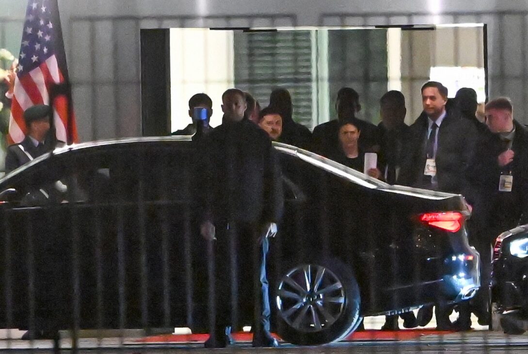 Volodimir Zelenski, intrând în mașină după discuțiile purtate cu delegația americană, duminică, 14 decembrie 2025, la Berlin. Credit: RALF HIRSCHBERGER / AFP / Profimedia