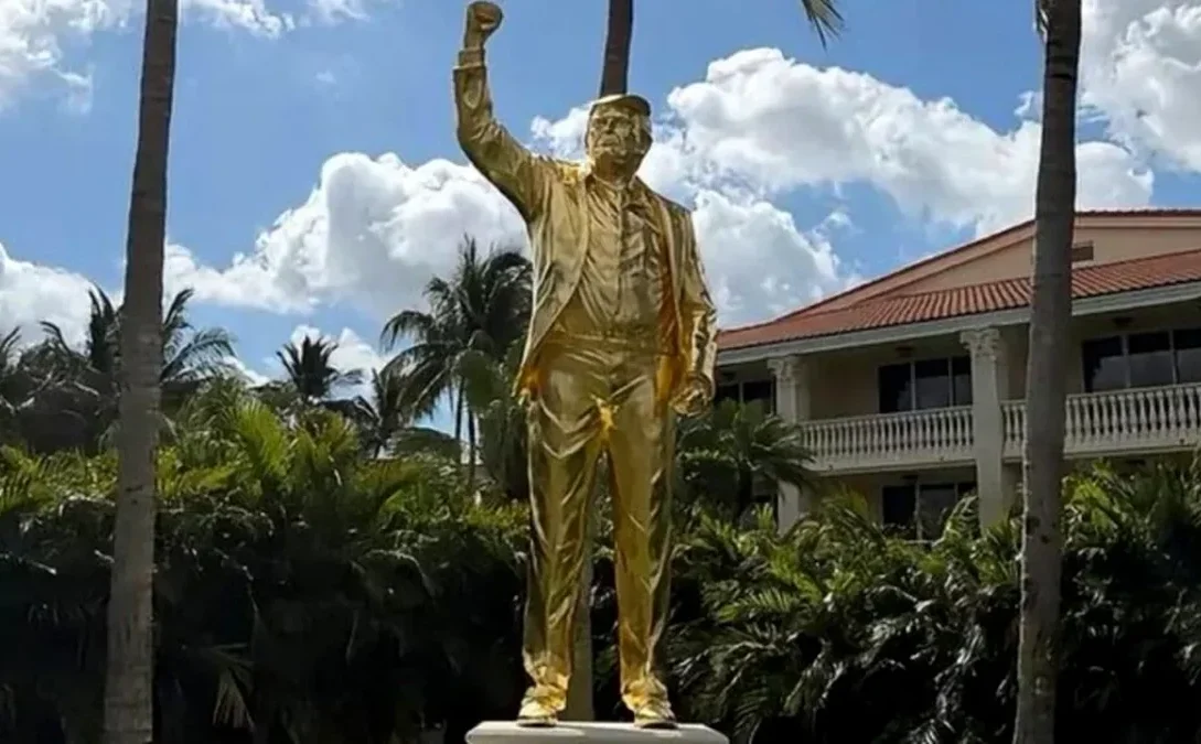 O statuie impresionantă a lui Donald Trump, înaltă de aproape 7 metri și acoperită cu un strat de aur, a fost amplasată într-un club de golf din Florida care îi aparține.